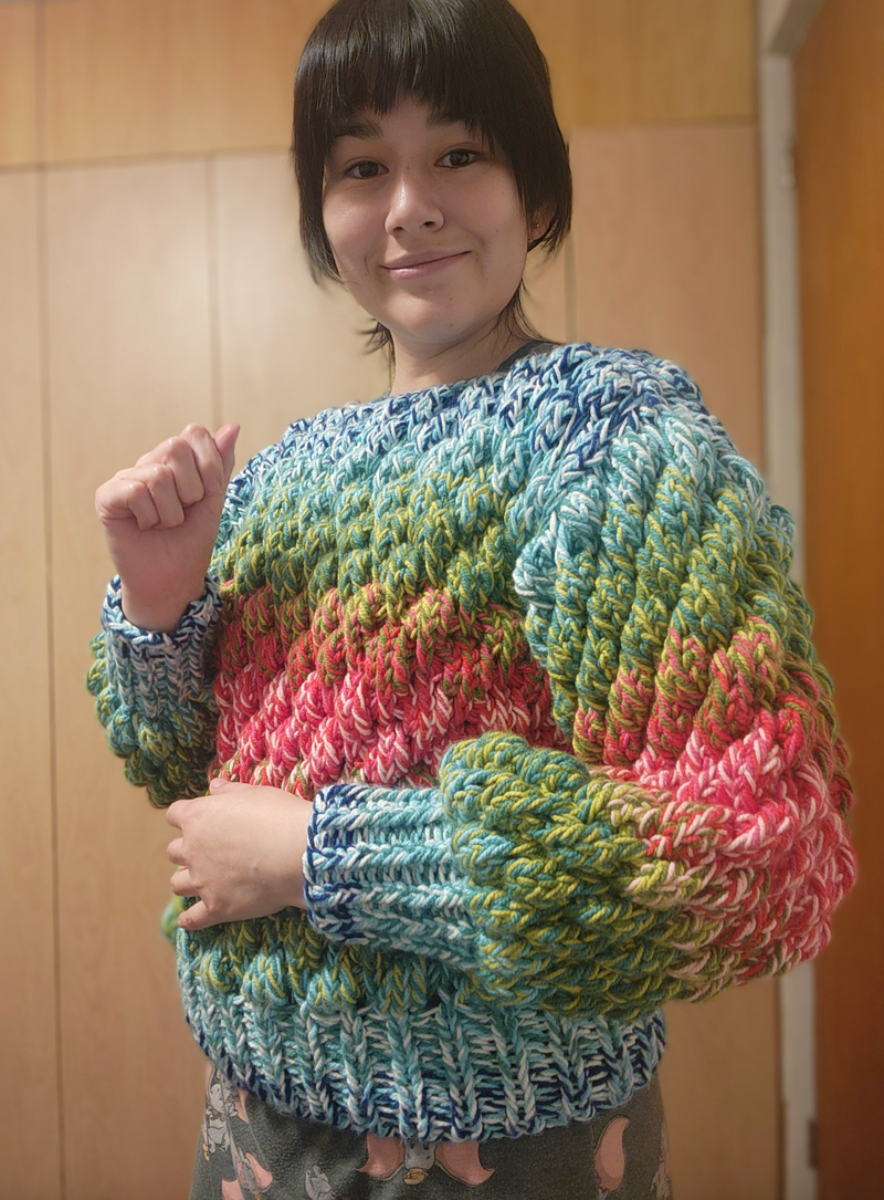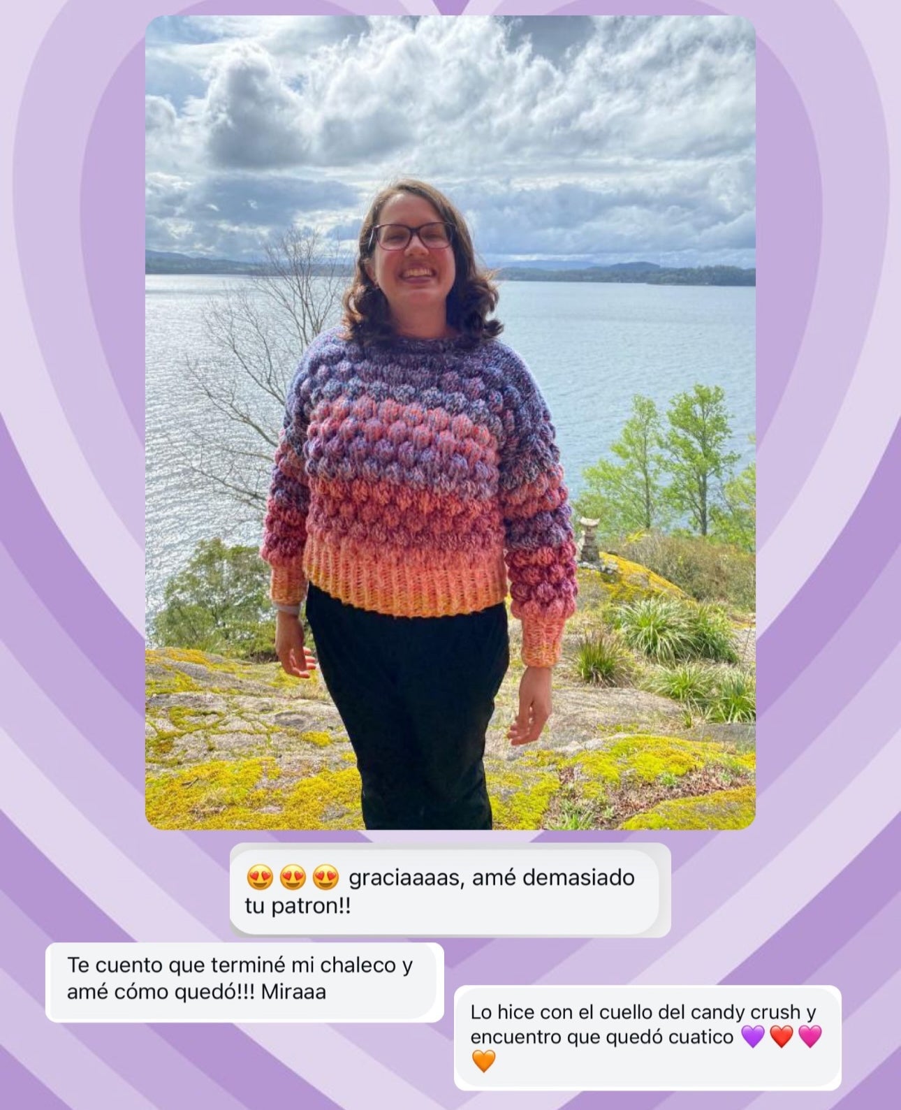 Estas son algunas fotos que me han mandado clientes que ya tejieron su Rainbowfish Sweater